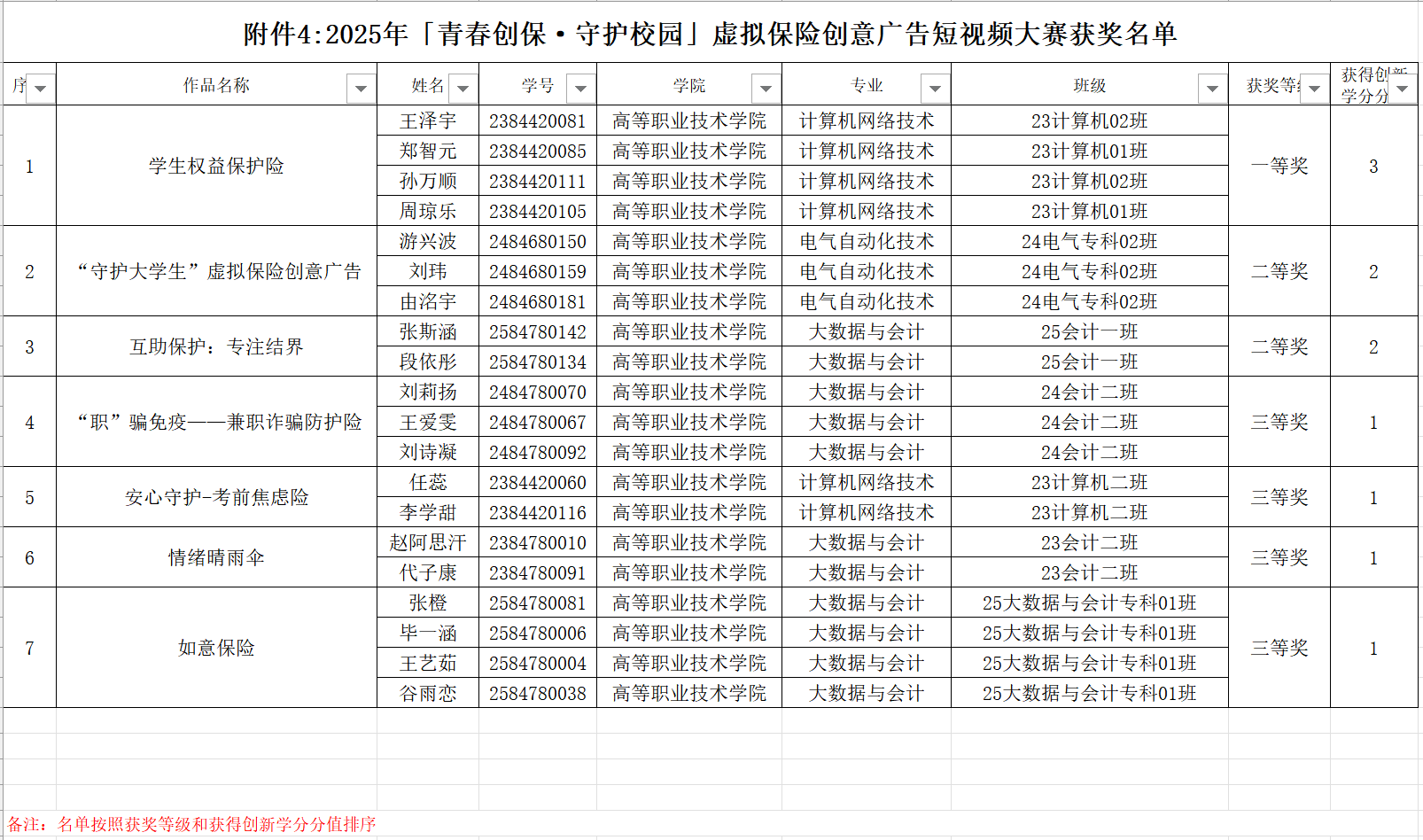上述获奖结果经校创新创业学院严格审核通过,获奖学生及团队将依据学院相关规定授予相应创新学分。公示期为2026年1月3日至2026年1月6日。公示期间,如对获奖结果有异议,请以书面形式并署真实姓名向学院院办反映。