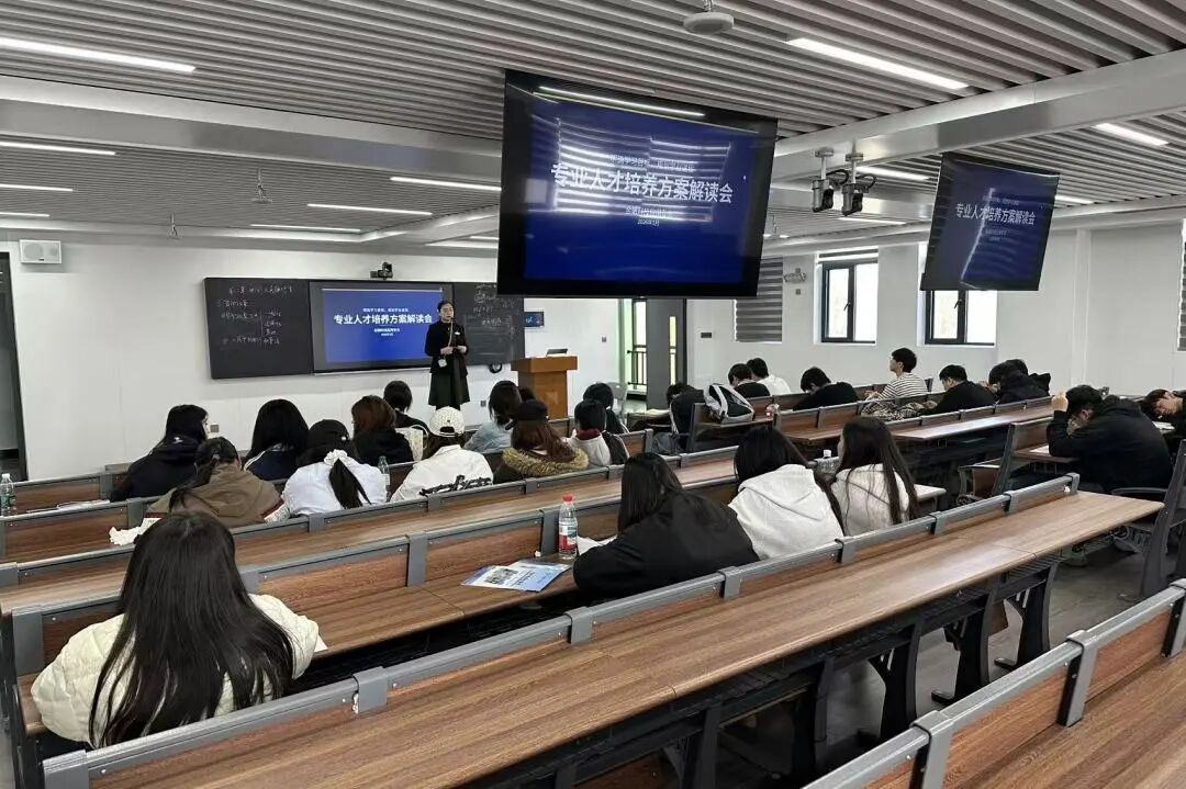 在本次解读会上,针对不同年级特点,专业带头人于泽楠老师分别从职业定位、课程体系、实践路径三个维度展开详细讲解。2023级聚焦“科技+金融”复合型人才培养,校企合作协同育人。2024级围绕数字化转型需求,应用浪潮、用友、金蝶等校企共建产业学院,配套浪潮数智企业仿真模拟实验室开展场景化教学。2025级创新构建“三阶成长体系”,持续深化金融科技与产业学院的结合,融入人工智能应用等前沿内容,实现从基础理论学习到真实项目研发的能力跃升。