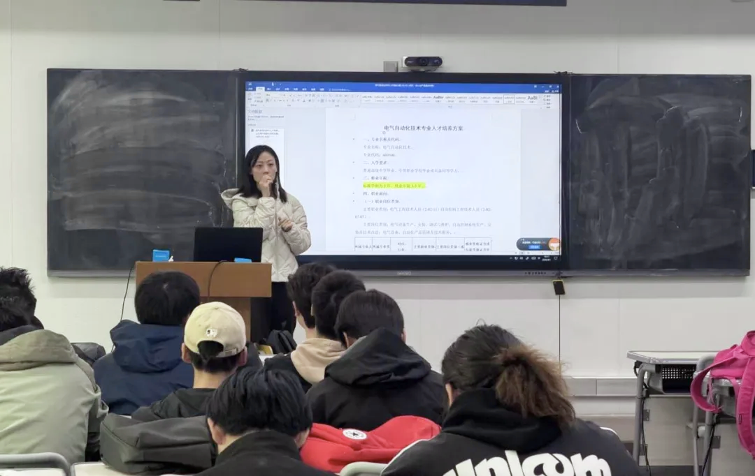 为帮助学生全面理解本专业人才培养方案,明确学习目标与发展方向,厘清学业规划与职业发展的内在关联,近日,电气自动化技术专业带头人王东丽老师、专任课教师丁禹宸老师和李铁真老师,面向2023、2024、2025级全体电气自动化技术学生,开展人才培养方案解读会。