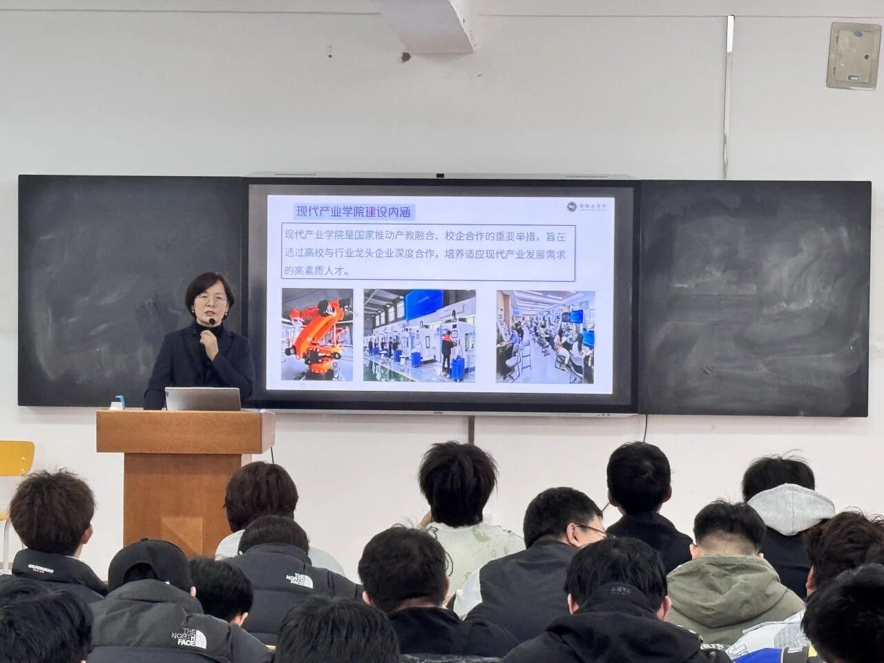 会议上,李老师就学生培养目标、企业岗位需求、学科课程设置及安排、我校特色的现代产业学院建设、毕业要求这几个方面展开全面的讲解。着重介绍了我校为“推动产教融合、校企合作”建立的现代产业学院:库卡授权工业机器人学院、浪潮产业学院、华中数控产业学院、智能制造中心等,解读了课程内容与行业、企业标准的深度融合。旨在为学生提供广阔的学习与实践平台,培养能够适应现代产业发展需求的高素质人才。